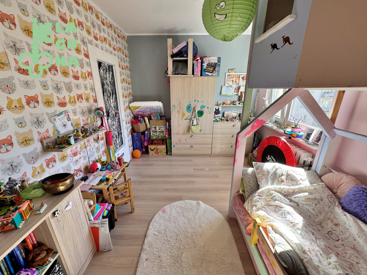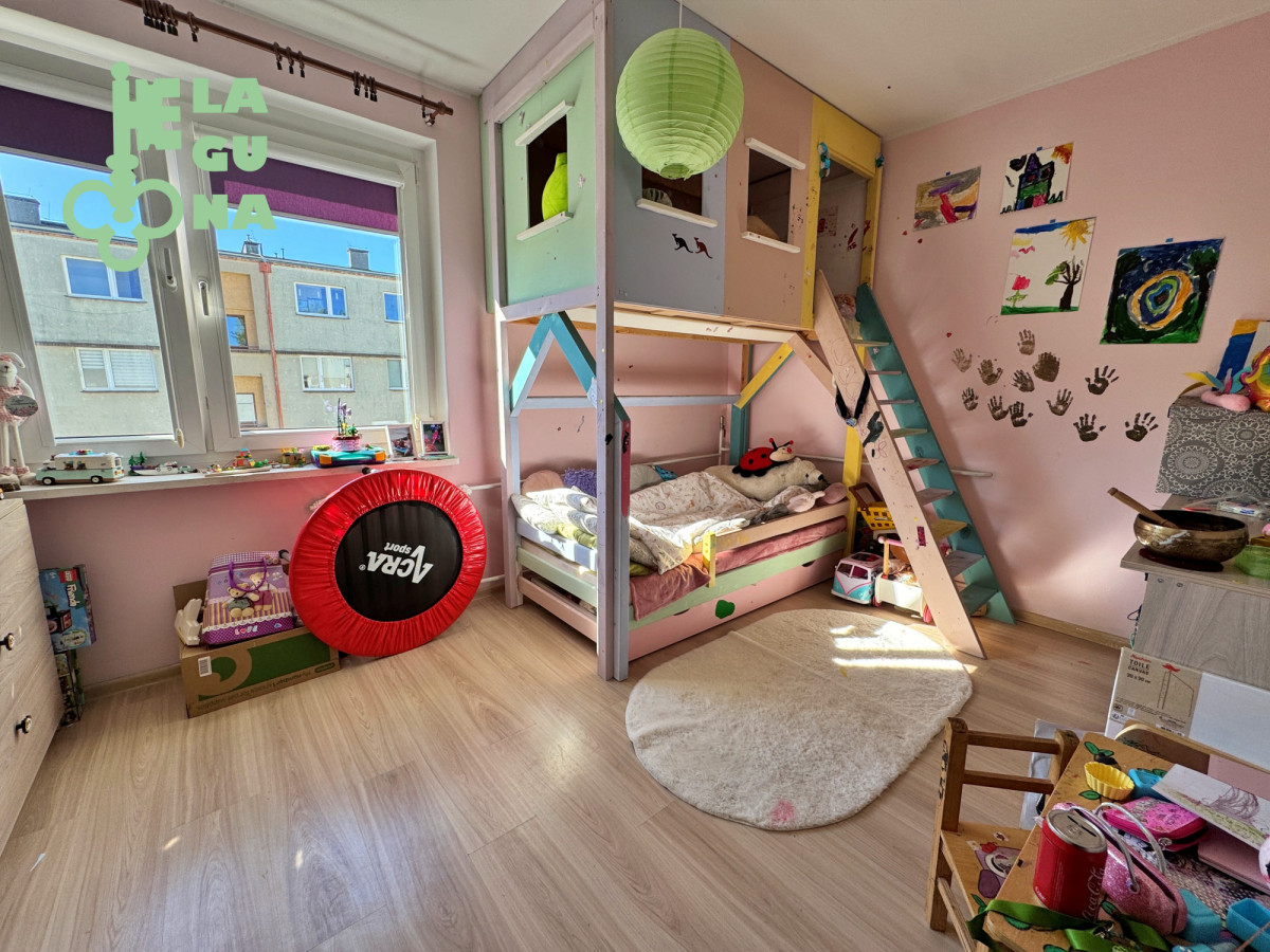 - pomieszczenia: duży salon z wyjściem na balkon, 3 sypialnie, oddzielna kuchnia, łazienka, oddzielne WC, mała garderoba/schowek, przedpokój,